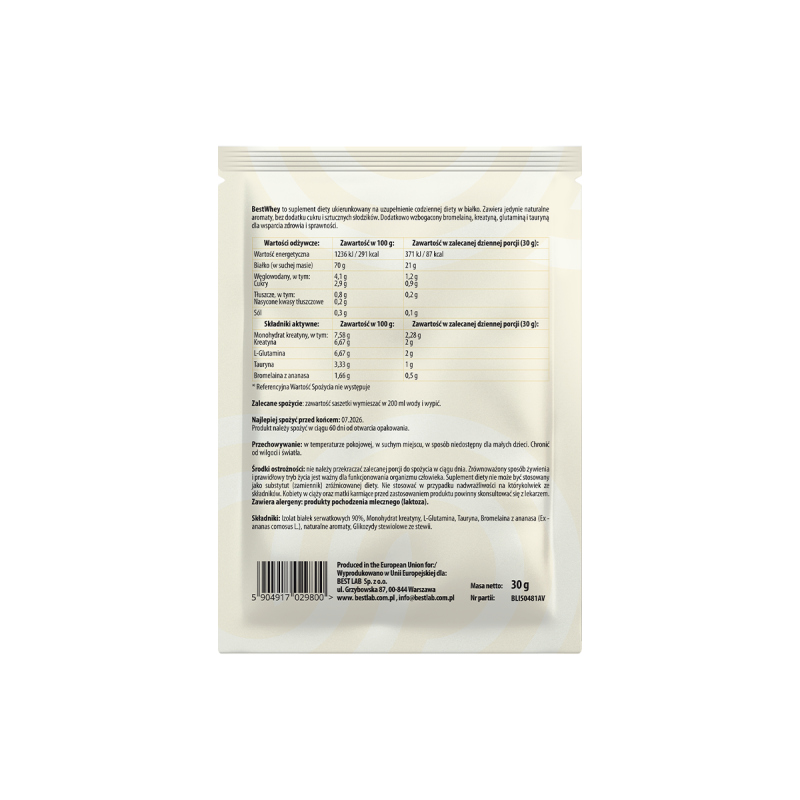 BestWhey to suplement diety opracowany z myślą o wsparciu budowy mięśni na każdym etapie życia. Formuła oparta na białku serwatkowym, monohydracie kreatyny, L-glutaminie i taurynie pomaga w rozwoju masy mięśniowej, regeneracji oraz zwiększeniu wydolności fizycznej. Dzięki czystemu składowi i zaawansowanej technologii produkcji, BestWhey jest idealnym wyborem dla osób aktywnych fizycznie, seniorów oraz dzieci w fazie intensywnego wzrostu, a także dla osób chcących uzupełnić niedobory białka w diecie.
